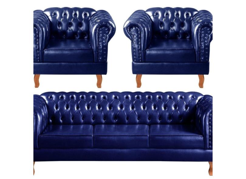 O menor preço encontrado no Brasil para Conjunto Sofá Chesterfield 3 Lugares + 2 Poltronas Dom Pedro Azul atualmente é R$ 5.799,97.