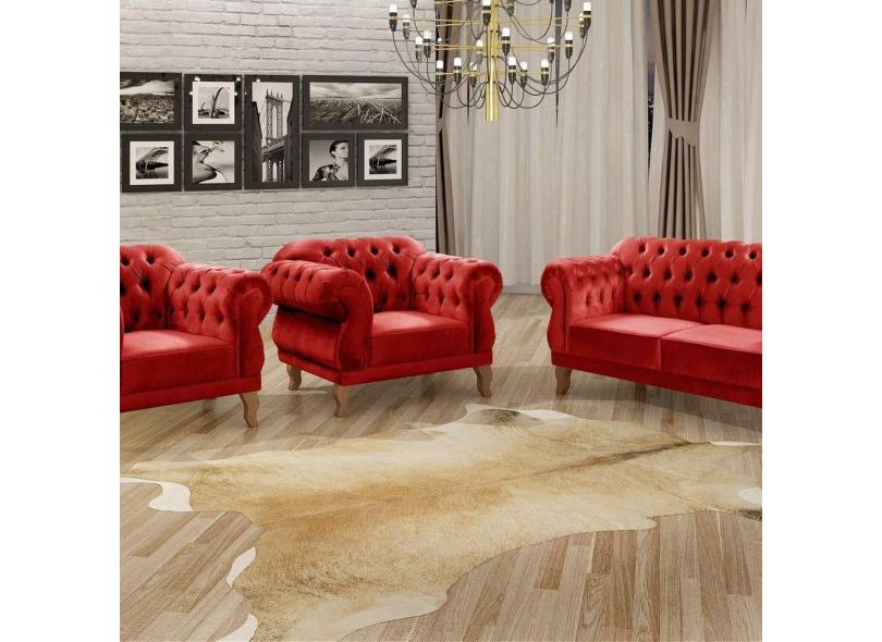 Conjunto Sofá Duquesa Chesterfield 2 Lugares e 2 Poltronas Vermelho