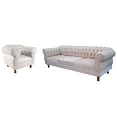 Conjunto Sofá Namoradeira Elisabeth Chesterfield Capitone Suede Nude D