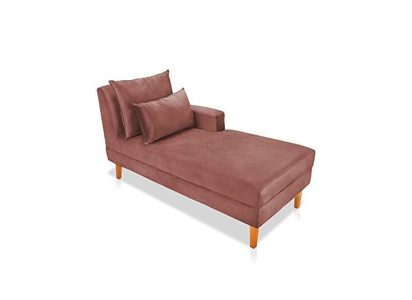 Divã Chaise Chloe 160 cm Veludo Rosê Pés Chanfrado Castanho - D'Rossi