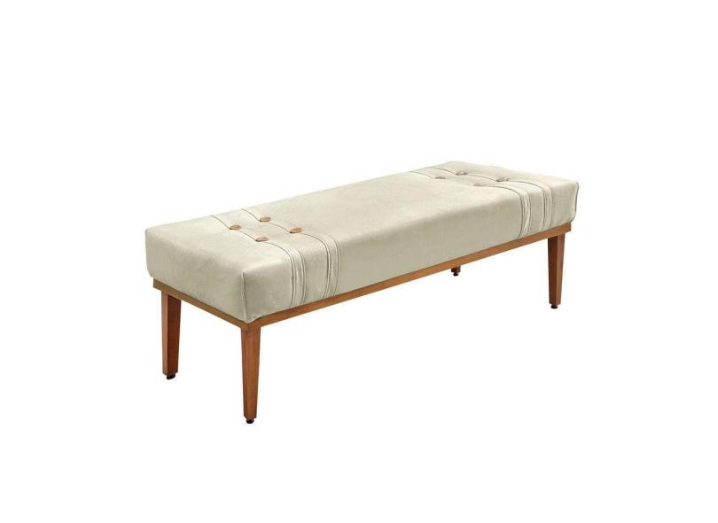Divã Recamier Banco Base Madeira Para Quarto Gênova 90cm Veludo S04 - D'rossi Cor Bege