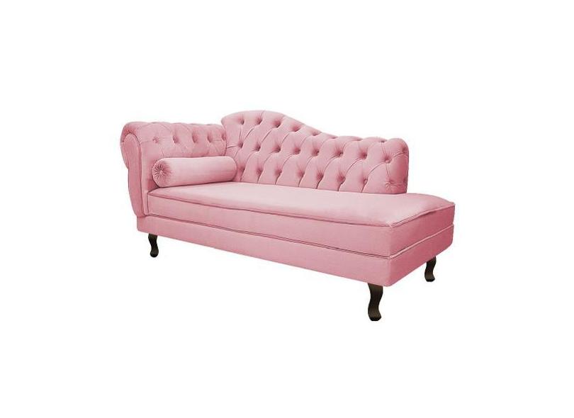 Divã Recamier Sofá Juliana 140cm Lado Direito Suede Rosa Bebê Sala De
