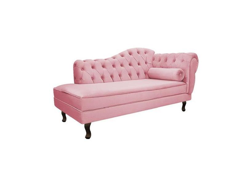 Divã Recamier Sofá Juliana 185cm Lado Esquerdo Suede Rosa Bebê Sala De