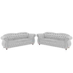 Dois Sofás Chesterfield Merlo 3 lugares 2M - Corano Branco / Decoração