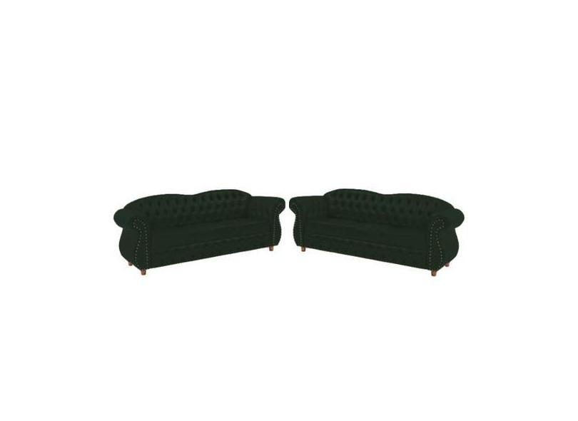 Dois Sofás Chesterfield Merlo 3 Lugares 2M - Suede Verde Musgo / Decor