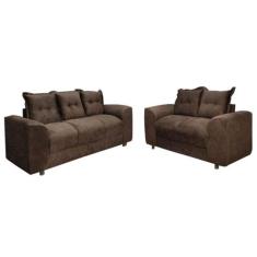 Jogo de Sofá de 2 e 3 lugares Porto Marrom Suede Resistente - AUREA D