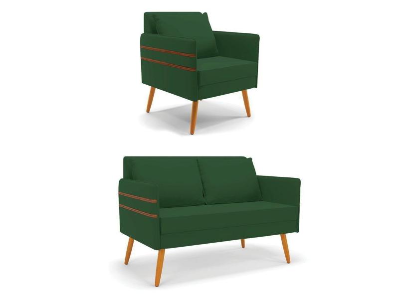 Kit 01 Namoradeira 02 Lugares E 01 Poltrona Castanho Verde