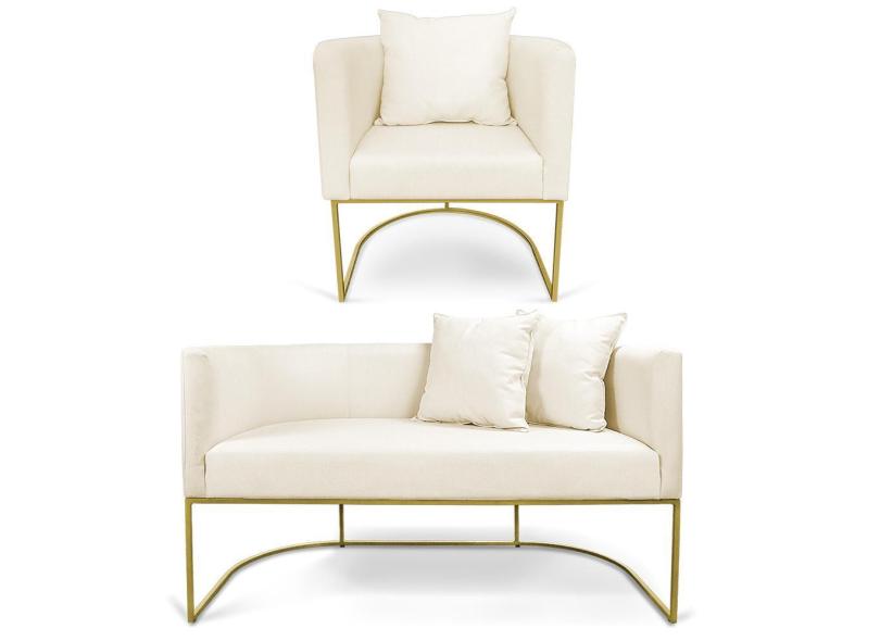 Kit 01 Namoradeira 02 Lugares e 01 Poltrona Paola Linho Base Metálica Dourado - D'Rossi