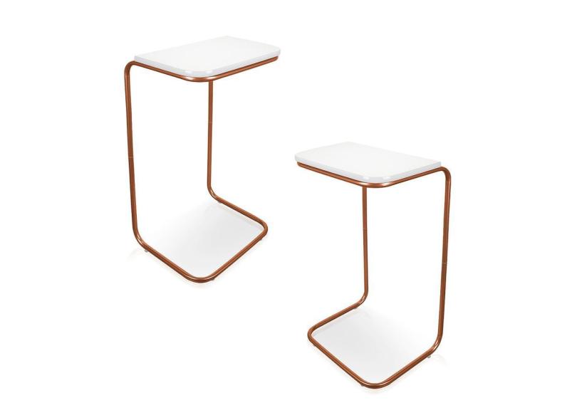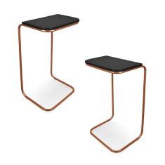 Kit 02 Mesas Lateral Tampo Multiuso Para Sofá Base Bronze - D'Rossi
