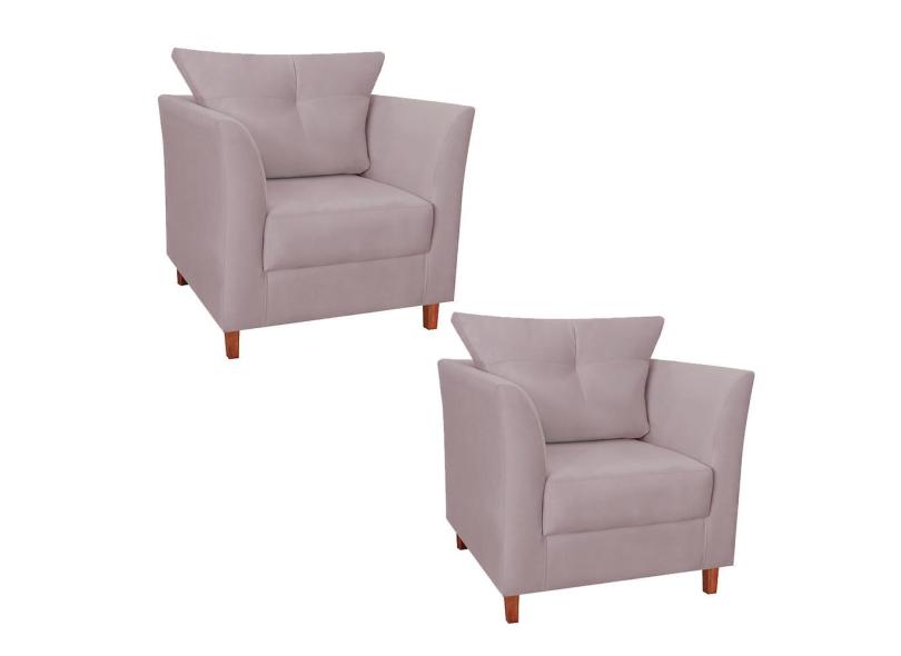Kit 02 Poltrona Cadeira Sofá Decorativa Isis Sala Estar Salão Beleza Suede Rosê - LM DECOR