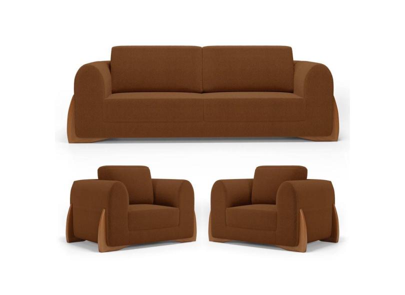 O menor preço encontrado no Brasil para Kit 02 Poltronas e 01 Sofá Bloom 220cm 03 Lugares com Pés de Madeira Bouclê Terracota - Desk Design atualmente é R$ 10.506,31.