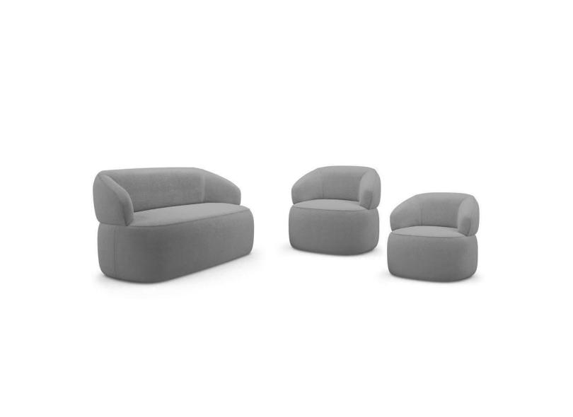 Kit 02 Poltronas Giratória E 01 Sofá Orgânico Glee 02 Lugares 140cm Bouclê Cinza - Desk Design