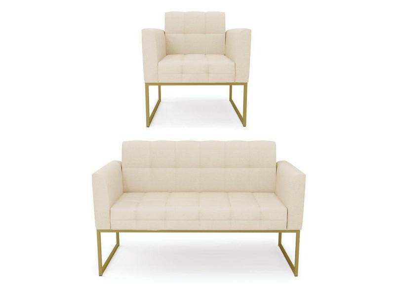 O menor preço encontrado no Brasil para Kit 1 Sofá Namoradeira E 1 Poltrona Elisa Linho Base Metálica Industrial Dourada - Cor A19 Bege atualmente é R$ 1.571,31.