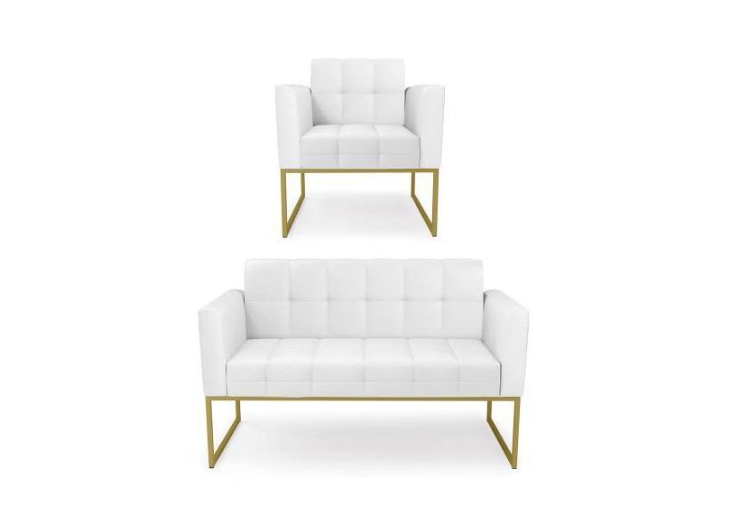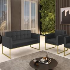 Kit 1 Sofá Namoradeira E 1 Poltrona Elisa Material Sintético Base Metá