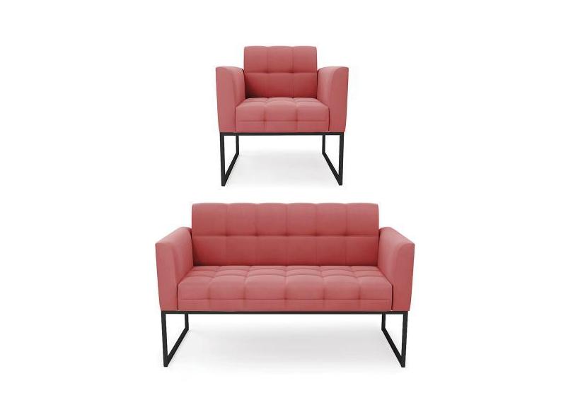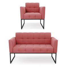 Kit 1 Sofá Namoradeira E 1 Poltrona Elisa Suede Rosê Base Metálica Ind