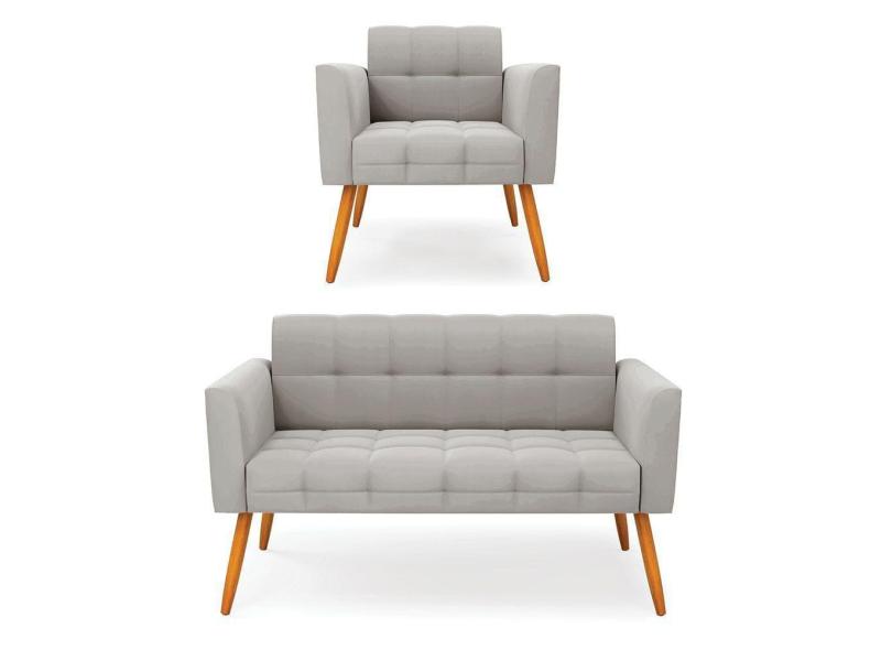 O menor preço encontrado no Brasil para Kit 1 Sofá Namoradeira e 1 Poltrona Elisa Veludo Cinza Pés Palito Castanho - D`Rossi atualmente é R$ 1.152,71.