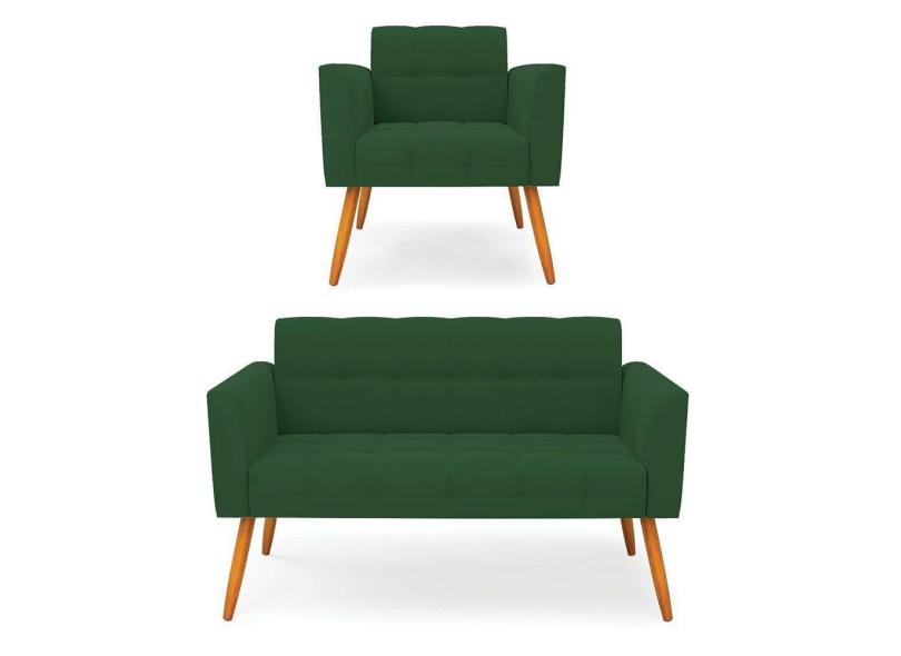 O menor preço encontrado no Brasil para Kit 1 Sofá Namoradeira E 1 Poltrona Elisa Veludo Verde Pés Palito Castanho - D`rossi atualmente é R$ 1.152,71.