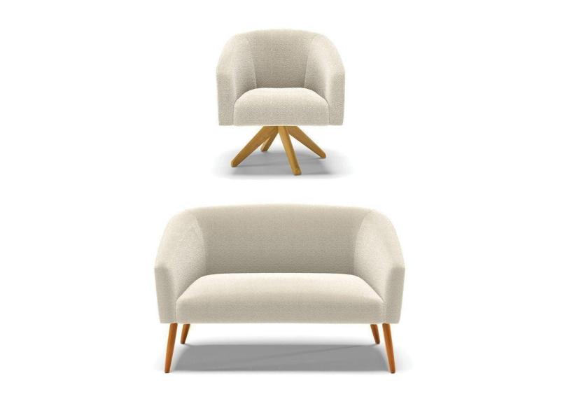 Kit 1 Sofá Namoradeira E 1 Poltrona Stella Bouclê Base De Madeira Ma30 - D`rossi Cor Bege
