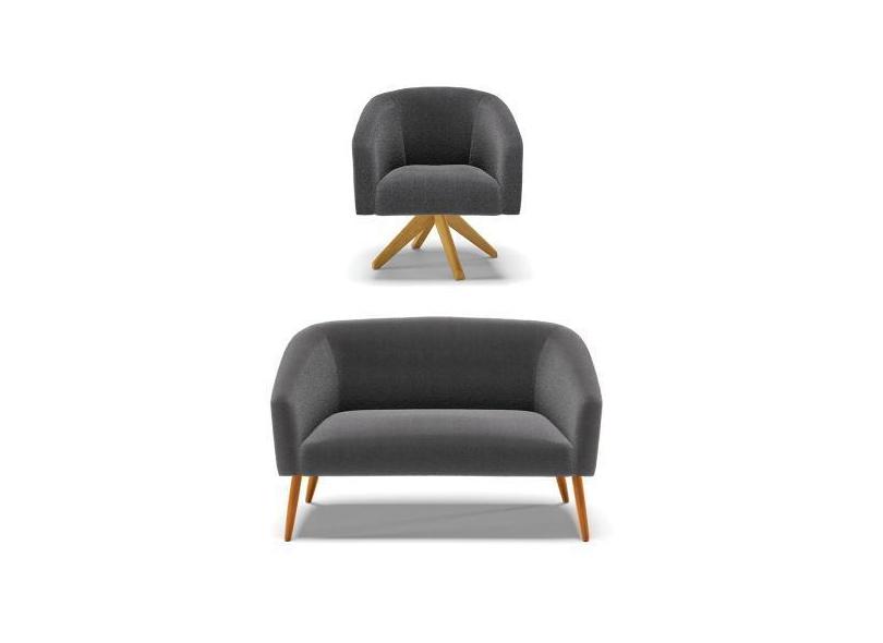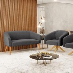 Kit 1 Sofá Namoradeira E 1 Poltrona Stella Bouclê Grafite Base De Made