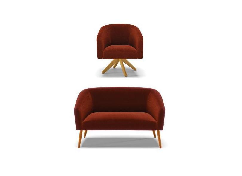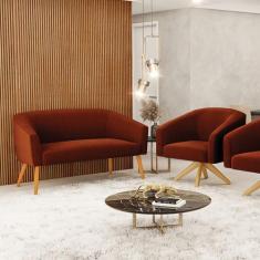 Kit 1 Sofá Namoradeira e 1 Poltrona Stella Bouclê Terra Base de Madeir