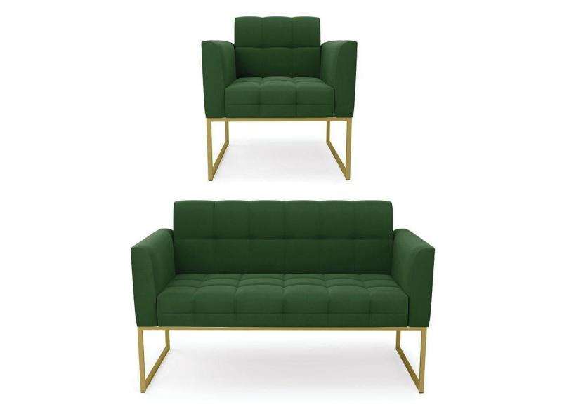 Kit 1 Sofá Namoradeira E 1 Poltrona Suede Base Metálica Industrial Dourado - D\`rossi Cor Verde