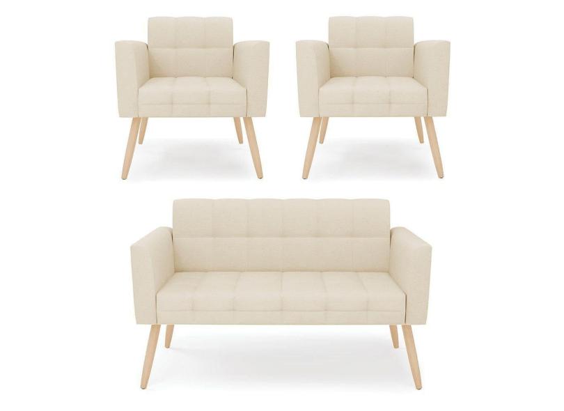 O menor preço encontrado no Brasil para Kit 1 Sofá Namoradeira E 2 Poltronas Elisa Linho Bege A19 Pés Palito Natural - D`rossi atualmente é R$ 1.622,63.