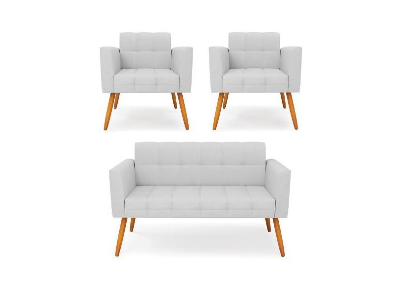 Kit 1 Sofá Namoradeira E 2 Poltronas Elisa Linho Cinza A05 Pés Palito