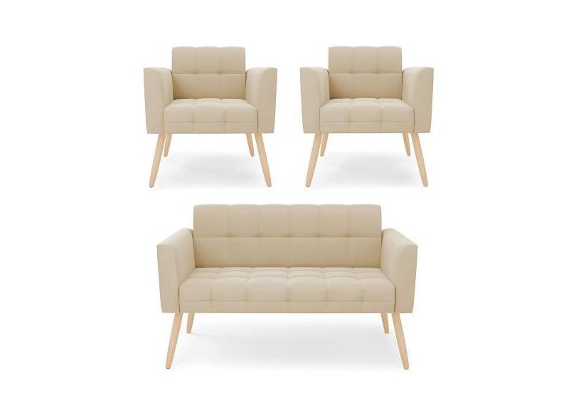 O menor preço encontrado no Brasil para Kit 1 Sofá Namoradeira E 2 Poltronas Elisa Suede Pés Palito Natural - atualmente é R$ 1.514,37.
