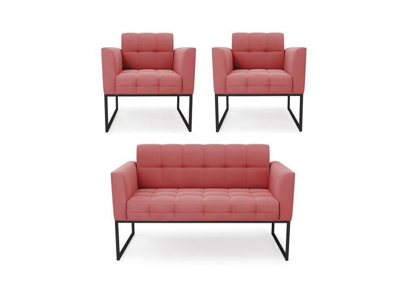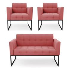 Kit 1 Sofá Namoradeira E 2 Poltronas Elisa Suede Rosê Base Metálica In