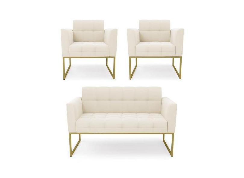 O menor preço encontrado no Brasil para Kit 1 Sofá Namoradeira E 2 Poltronas Elisa Veludo Bege Base Metálica I atualmente é R$ 2.109,49.