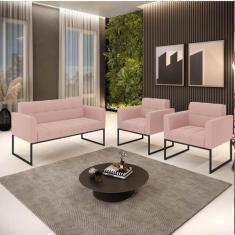 Kit 1 Sofá Namoradeira E 2 Poltronas Elisa Veludo Rosê Base Metálica I