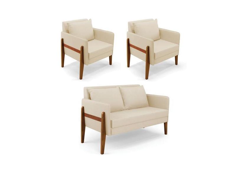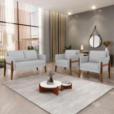 Kit 1 Sofá Namoradeira E 2 Poltronas Lana Linho Base De Madeira - D'ro