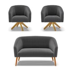 Kit 1 Sofá Namoradeira E 2 Poltronas Stella Bouclê Base De Madeira Ma3