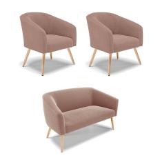 Kit 1 Sofá Namoradeira e 2 Poltronas Stella Bouclê Pés Palito Natural - D`Rossi