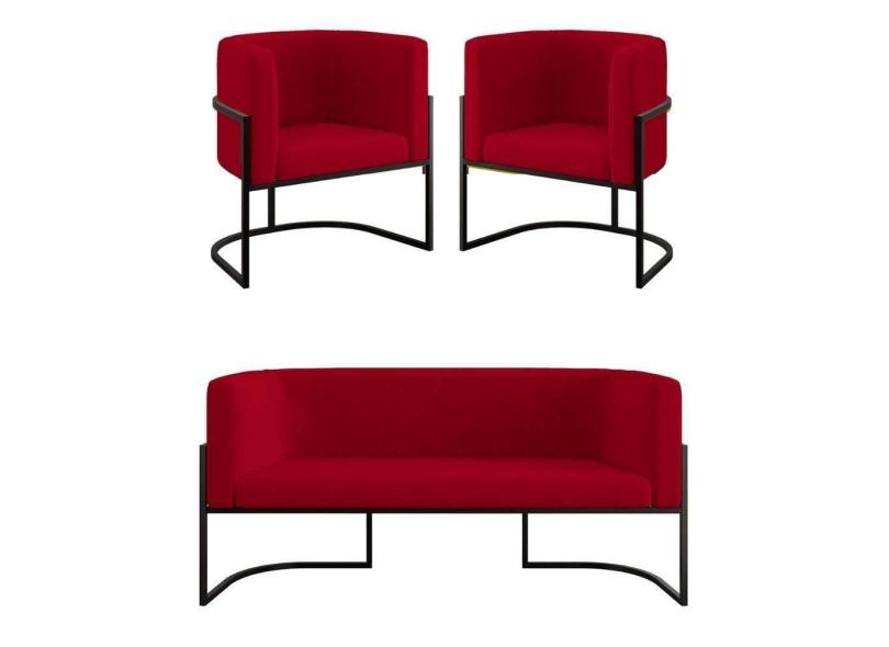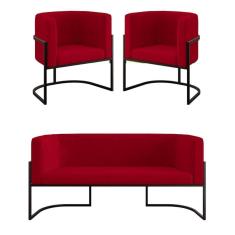 O menor preço encontrado no Brasil para Kit 2 Cadeiras Poltronas + Sofá 2 Lugares Base De Metal PretoVermelho atualmente é R$ 2.023,74.