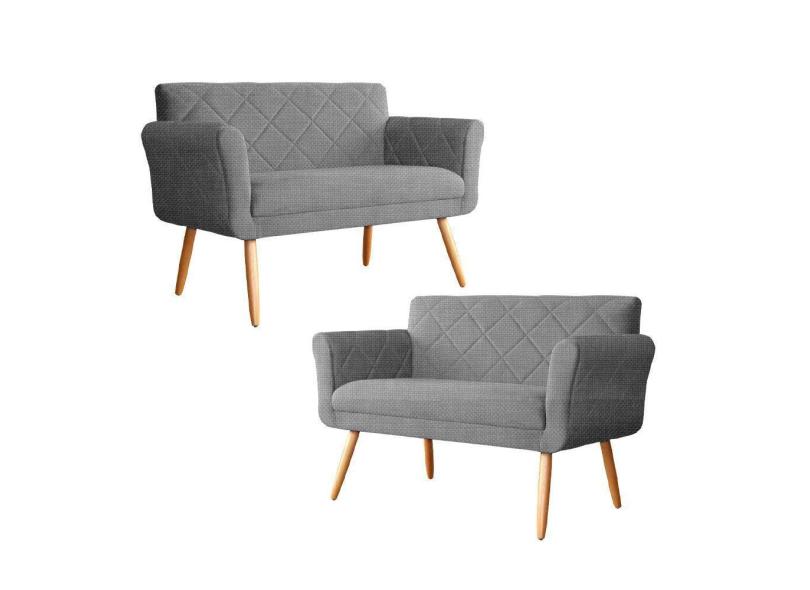 Kit 2 Namoradeira Sofá Isabela Tressê Linho Cinza - Fm