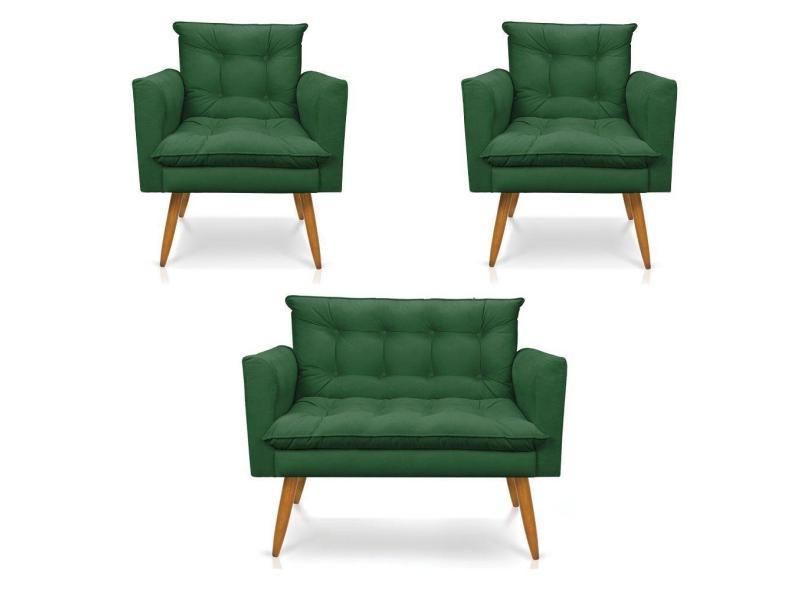 Kit 2 Poltronas E Namoradeira 2 Lugares Olivia Suede Verde