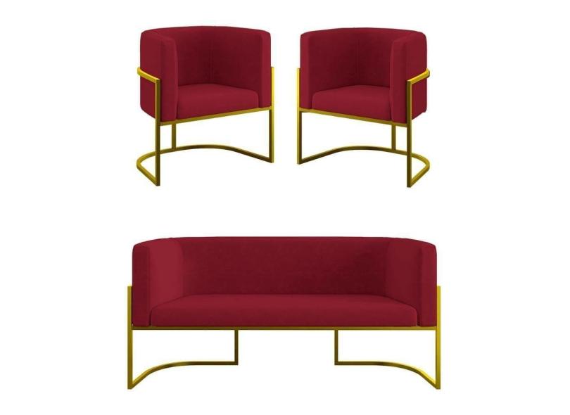 O menor preço encontrado no Brasil para Kit 2 Poltronas + Sofá 2 Lugares Base De Metal Gold Balaqui Marsala atualmente é R$ 2.023,74.