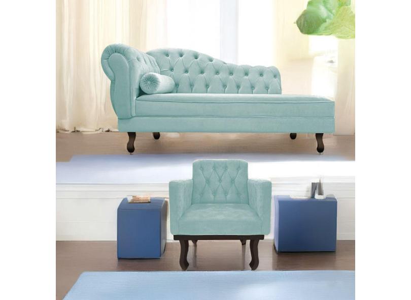 Kit Diva Recamier Diana 140cm Lado Direito e 01 Poltrona Classic Suede Azul Tiffany