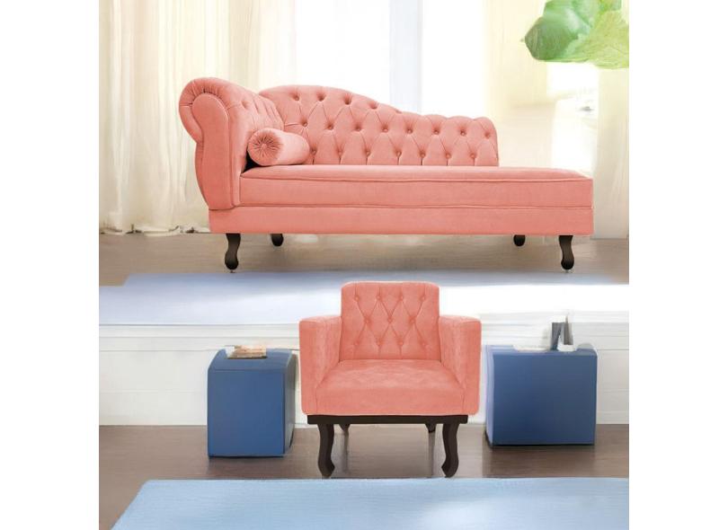 Kit Diva Recamier Diana 140cm Lado Direito e 01 Poltrona Classic Suede Coral