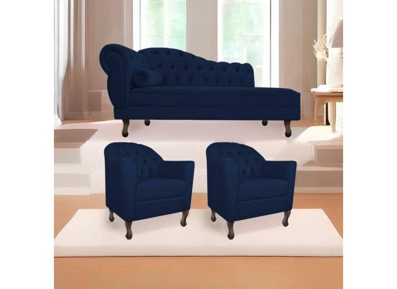 Kit Diva Recamier Diana 140cm Lado Direito e 02 Poltronas Julia Suede Azul Marinho