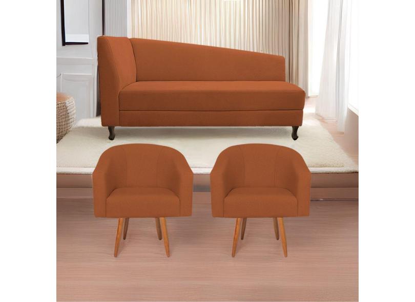 Kit Diva Recamier Heitor 140Cm Lado Direito E 02 Poltronas Luiza Suede - Doce Sonho Móveis Terracota