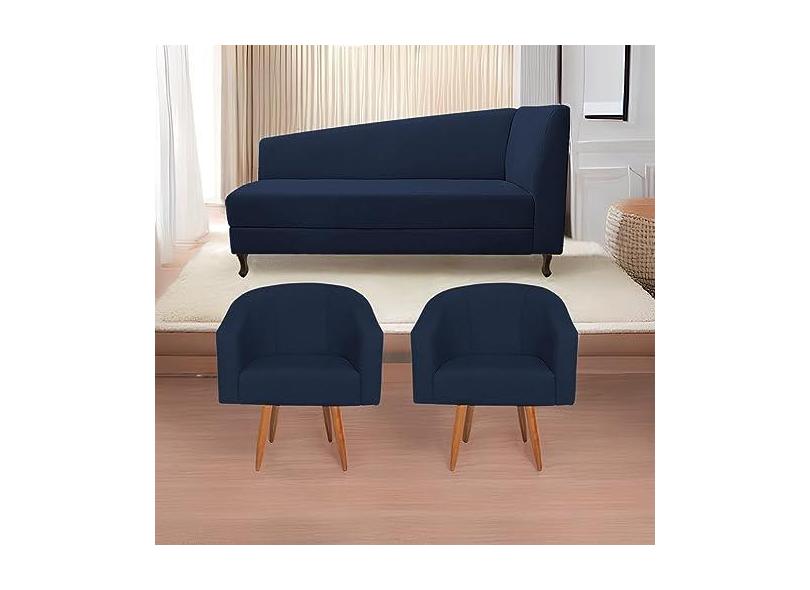 O menor preço encontrado no Brasil para Kit Diva Recamier Heitor 140cm Lado Esquerdo e 02 Poltronas Luiza Suede Azul Marinho - Amarena Móveis atualmente é R$ 1.929,95.