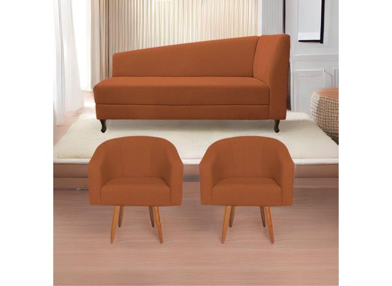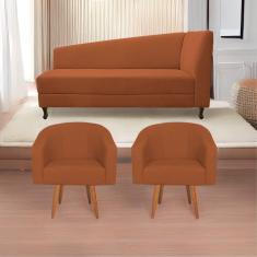 Kit Diva Recamier Heitor 160cm Lado Esquerdo e 02 Poltronas Luiza Suede Terracota
