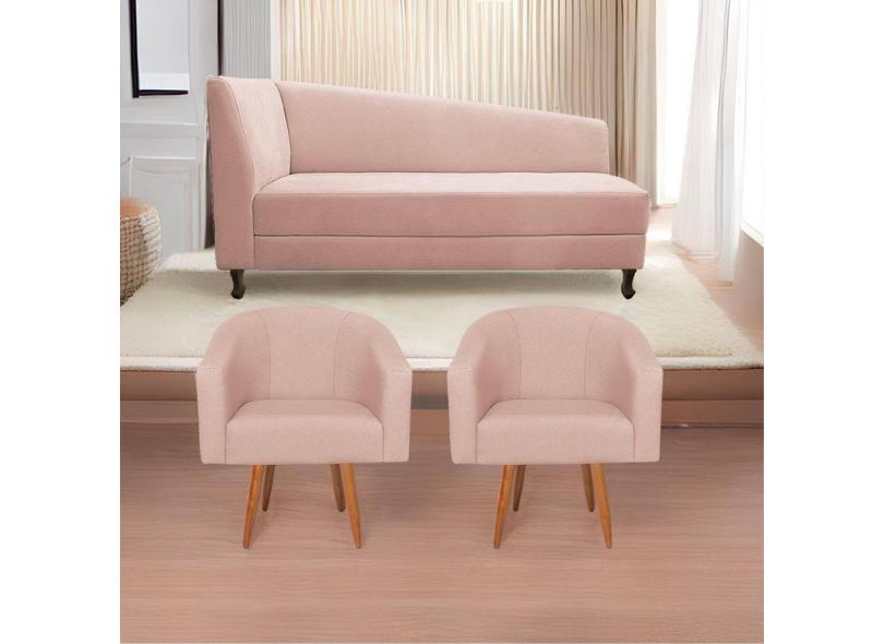 Kit Diva Recamier Heitor 185Cm Lado Direito E 02 Poltronas Luiza Suede - Doce Sonho Móveis Rosê