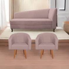 Kit Diva Recamier Heitor 185cm Lado Esquerdo e 02 Poltronas Luiza Linho Rosê - Amarena Móveis