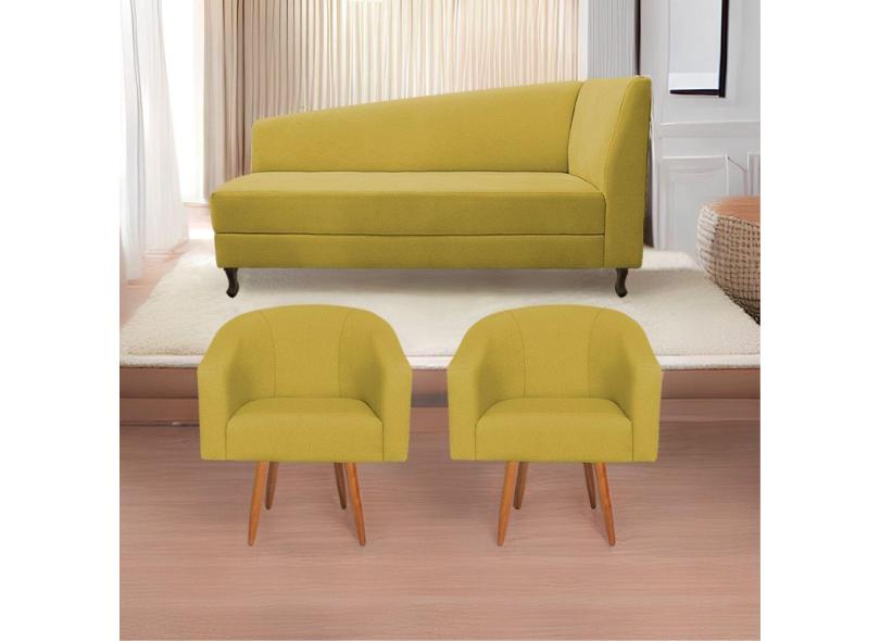 Kit Diva Recamier Heitor 185Cm Lado Esquerdo E 02 Poltronas Luiza Suede - Doce Sonho Móveis Amarelo