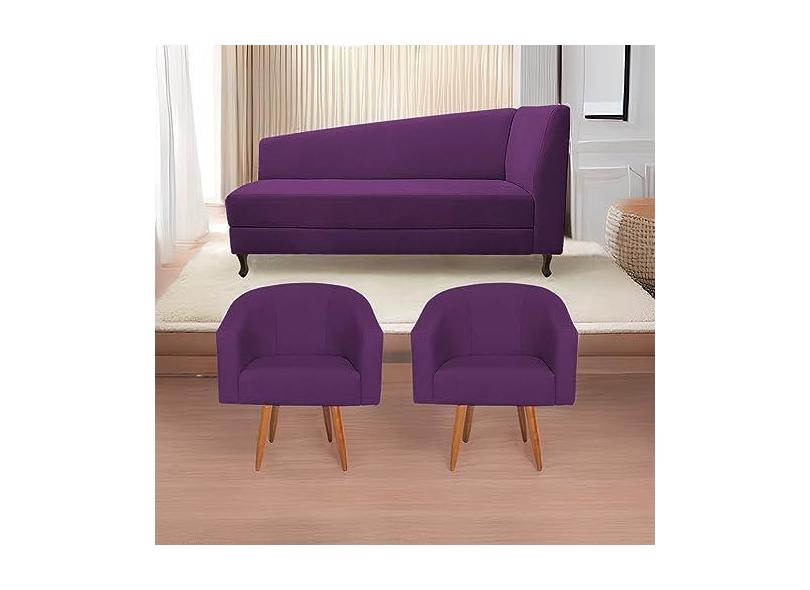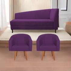 Kit Diva Recamier Heitor 185cm Lado Esquerdo e 02 Poltronas Luiza Suede Roxo - Amarena Móveis