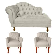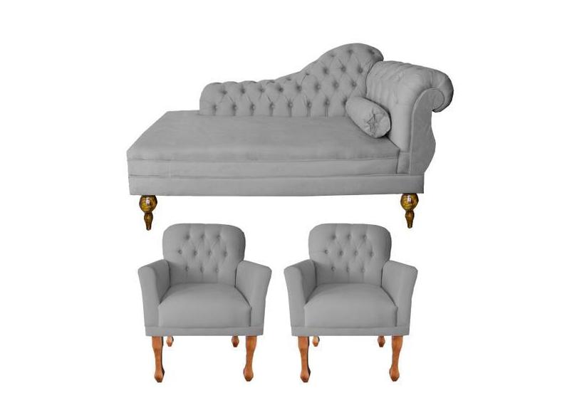 Kit Divã Recamier Sofá 120cm + 2 Poltronas P/ Sala De Espera - Suede -