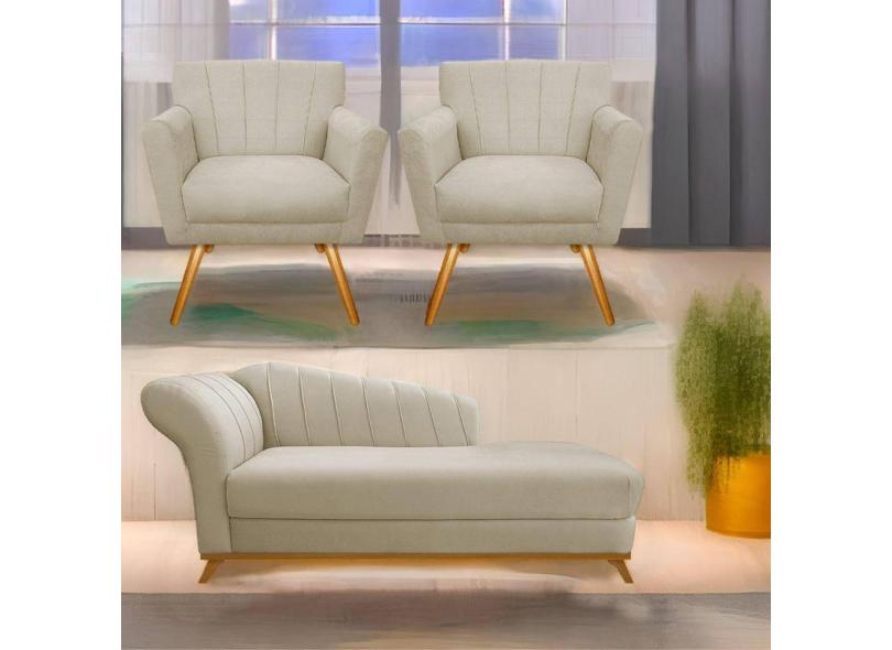 Kit Diva Recamier Vanessa 185Cm Lado Direito E 02 Poltronas Laura Linho Cor Bege